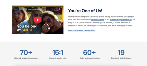 After joining the campus team, my mission was to set campus apart both from the online audience and our competitors, by listening and leveraging what SNHU does best: community, cost, and caring about our students.